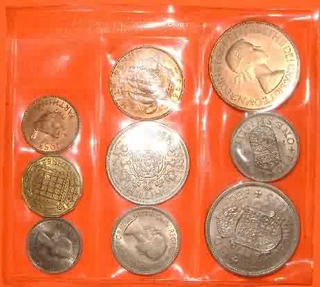 1953 Mint Set Queen Elizabeth II Halfcrown,Florin,English & Scottish Shillings,Sixpence,Brass Threepence,Penny,Halfpenny,Farthing.In Official Royal Mint Plastic pack |